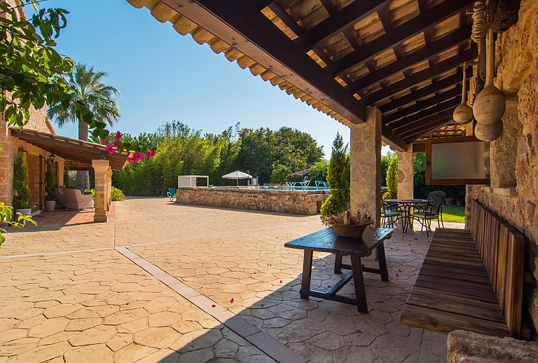 Außenbereich: Das Grundstück bietet Kindern viel Platz zum Spielen und Erkunden. Der mediterrane Garten bietet eine riesige Pflanzenvielfalt und ist des Eigentümers ganzer Stolz. Die Blumenbeete und die Rabatten mit der kleinen Rasenfläche seitlich vom Haus sind eine Augenweide. Unter der großen überdachten Terrasse gibt es verschiedene Sitzecken und Liegestühle. Der 10 x 10 m große Pool war ursprünglich ein Becken, welches vor der Umgestaltung, der Bewässerung der angrenzenden Felder diente. Heute ist der private Pool das Highlight dieser tollen Anlage. Es erwarten Sie außerdem 6 Sonnenliegen, ein Balinesisches Bett, eine Außendusche, ein gemauerter Grill und Tischtennis. Freuen Sie sich auf entspannte Urlaubstage mit der ganzen Familie!