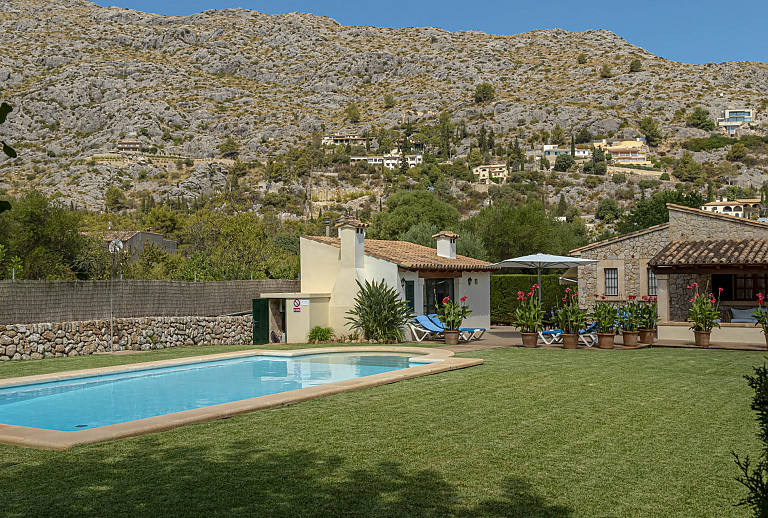 Finca in kurzer Distanz zur malerischen Ortschaft Pollenca. Sie erreichen den Ort zu Fuß auf einem kurzen Spaziergang von ca. 10 Minuten. Größere Supermärkte wie Lidl und Eroski liegen 5 Gehminuten entfernt an der Ma-2200. In der Bäckerei "Can Xim" in der Calle Mar N. 11 gibt es morgens ab 07:00 Uhr frisches Brot. Zum Baden fahren Sie ins 3 km entfernte Cala San Vicente, wo Sie kristallklare Buchten und eine traumhafte Bergkulisse erwarten. Breitere Sandstrände und Wassersportmöglichkeiten bieten sich Ihnen am Stadtstrand in Puerto de Pollenca.