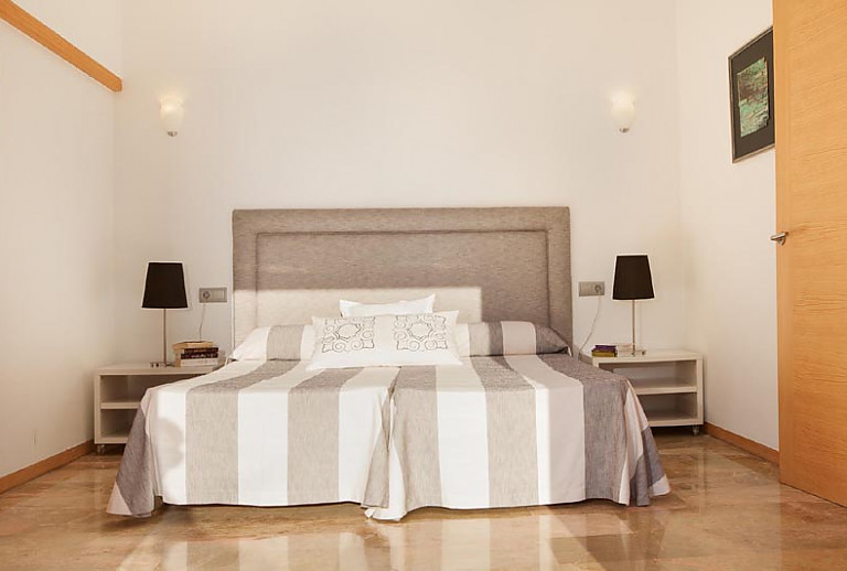 Finca: Diese hübsche Finca liegt auf einem umzäunten, 3.500 m2 großen Grundstück im zauberhaften Norden Mallorcas und bietet Platz für 4 Gäste. Sämtliche Räume des Hauses verteilen sich auf eine Wohnebene, welche 130 m2 umfasst. Zahlreiche Fensterfronten verleihen der Mietimmobilie ein helles und freundliches Ambiente. Sie betreten die Finca über das großzügig geschnittene sowie lichtdurchflutete Wohn-Esszimmer. Der Wohnbereich lädt mit einem gemütlichen Sofa, Polstersesseln sowie TV und Stereo zu entspannten Stunden ein. Unmittelbar daneben steht ein großer Esstisch mit komfortablen Korbstühlen für gemeinsame Mahlzeiten bereit. Von hier geht es fließend in die mit Backofen, Herd, Mikrowelle, Geschirrspüler und Kühlschrank ausgestattete Küche über. Für einen guten Start bei einem ausgiebigen Frühstück finden Sie natürlich auch kleinere Geräte wie eine Kaffeemaschine, Toaster oder einen Wasserkocher. Praktisch ist der direkte Zugang zur Terrasse am Pool, was das Decken des Tisches vereinfacht. Im hinteren Teil der Finca sind die drei geschmackvoll möblierten und mit Liebe zum Detail dekorierten Schlafzimmer untergebracht. Für hohen Schlafkomfort wurden alle Schlafräume mit Klimageräten versehen. Zwei der Schlafzimmer verfügen über je zwei Einzelbetten, wobei der dritte Raum ein Doppelbett und ein integriertes Bad mit Dusche bietet. Die anderen beiden Schlafräume teilen sich das zweite Badezimmer, welches mit einer Duschbadewanne ausgestattet ist. Zusätzliche Ausstattungsmerkmale dieses Mietobjektes sind eine Waschmaschine, freies Internet, Poolhandtücher sowie ein Safe.