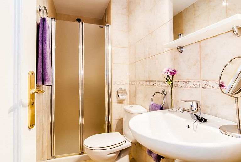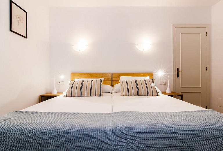 Es gibt zwei Schlafzimmer mit jeweils zwei Einzelbetten, beide klimatisiert, sowie zwei Badezimmer, eines mit Duschwanne, eines mit Dusche. Zur Ausstattung gehören Internet, Waschmaschine, Babybett und Hochstuhl.