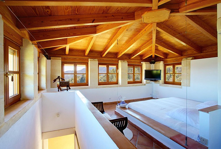 Zauberhafte Finca für acht Gäste mit einem atemberaubenden Ausblick auf das nahe Städtchen Polllença sowie die ländliche Umgebung. Das mit Wifi und Zentralheizung ausgestattete hübsche Haus kann mit insgesamt vier Schlafzimmern sowie vier Bädern (1 x Jacuzzi) plus einer Toilette 8 Gäste unterbringen. Zwei Schlafräume verfügen über jeweils 2 Betten, die anderen beiden Schlafzimmer sind mit einem Doppelbett ausgestattet. Eines der Schlafzimmer liegt im Turm und bietet auf einer Ebene ein großzügiges Badezimmer mit Dusche und tiefer gelegener Wanne. Die Schlafräume sind klimatisiert, so dass für einen erholsamen Schlaf gesorgt ist. Im unteren Bereich der Finca liegen zudem eine mit allen Annehmlichkeiten ausgestattete Küche, welche in einen kleinen Essbereich übergeht, das Esszimmer mit Tisch und ausreichen Sitzmöglichkeiten sowie ein gemütliches Wohnzimmer mit bequemen Polstermöbeln, SAT-TV, DVD und Musikanlage. Vom hier gelangen Sie in den wunderschönen, mit zahlreichen mediterranen Pflanzen angelegten Außenbereich. Am privaten Pool mit ausreichend Sonnenliegen können Sie wunderbar in ruhiger Umgebung entspannen. Ein gemauerter Grill dient zur Zubereitung von Speisen im Freien, welche Sie anschließend auf der überdachten Terrasse inmitten herrlicher Natur genießen können.