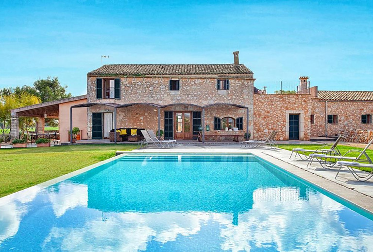 Finca für 12 Gäste bei Manacor auf Mallorca. Mit großem Pool, 6 SZ, 5 BZ, Klimaanlage in den SZ, WLAN, Sat-TV, Tischtennis, Schaukeln, gemauertem Grill.Preise