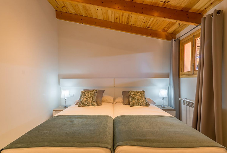 Schlafzimmer mit Einzelbetten und Nachttisch
