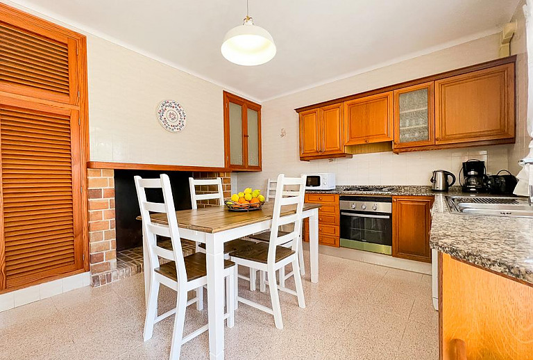 Die Finca Margarita Cas Concos bietet auf 169 m² Wohnfläche ausreichend Platz für 6 Personen. Im Erdgeschoss befindet sich eine großzügige, voll ausgestattete Küche mit Esstisch und allen für die Selbstversorgung wichtigen Gerätschaften. Das angrenzende Wohnzimmer mit gemütlichen Polstermöbeln und Sat-TV lädt zum Verweilen ein. Ebenfalls im Erdgeschoss liegt ein klimatisiertes Schlafzimmer mit Doppelbett und integriertem Bad mit Duschbadewanne. Im Obergeschoss erwartet Sie ein offener Rückzugsbereich mit Sitzmöbeln – perfekt zum Lesen oder Entspannen – sowie zwei weitere klimatisierte Schlafzimmer mit je zwei Einzelbetten. Alle Schlafräume sind freundlich hell in Beige- und Weißtönen gestaltet und geschmackvoll aufeinander abgestimmt. Sie teilen sich ein weiteres Badezimmer, ebenfalls mit Duschbadewanne. Die Klimaanlage wird über eine Zeitschaltuhr reguliert – für einen verantwortungsvollen Umgang mit Energie. Zur weiteren Ausstattung gehören WLAN, ein Safe sowie ein Babybett und ein Hochstuhl für die Kleinsten.