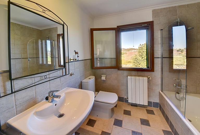 Über die Treppe im Flur gelangen Sie in die obere Etage, wo die anderen beiden klimatisierte Schlafzimmer mit Betten von 1,80 x 2,00 m liegen, jeweils mit eigenem Bad und Zugang zu einem Balkon mit herrlicher Aussicht.