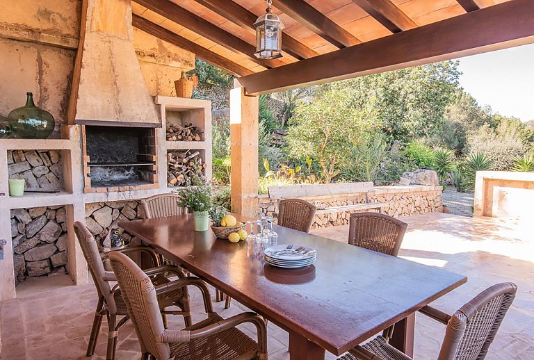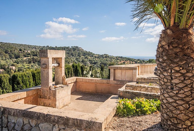 Die Finca liegt auf einem 15.000 m2 großen, komplett eingezäunten Grundstück mit üppiger mediterraner Vegetation, Palmen, Topfpflanzen und Zitrusbäumen. Auf einer der verschiedenen Terrassen erreichen Sie den 5,00 x 10,00 m Chlorpool mit ausreichend Sonnenliegen und einem überdachten Liegebereich für Schatten und Erholung. Zahlreiche Sitzplätze und Rückzugsorte im Garten laden zum Entspannen ein, jedes Schlafzimmer verfügt zudem über einen eigenen Balkon mit Blick auf die Landschaft. Für gemeinsame Mahlzeiten im Freien gibt es einen überdachten Essplatz mit Holzkohlegrill, und auf dem Grundstück stehen ausreichend Stellplätze für mehrere Fahrzeuge zur Verfügung.